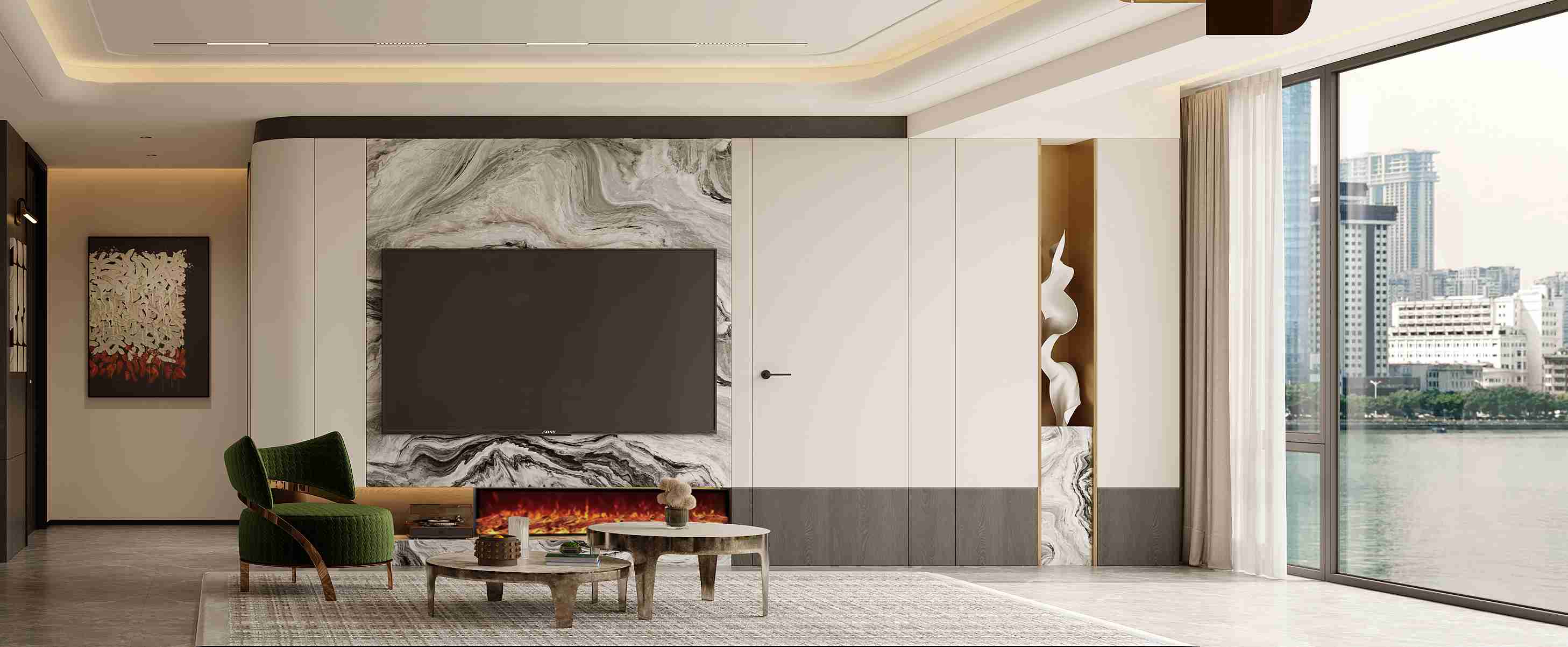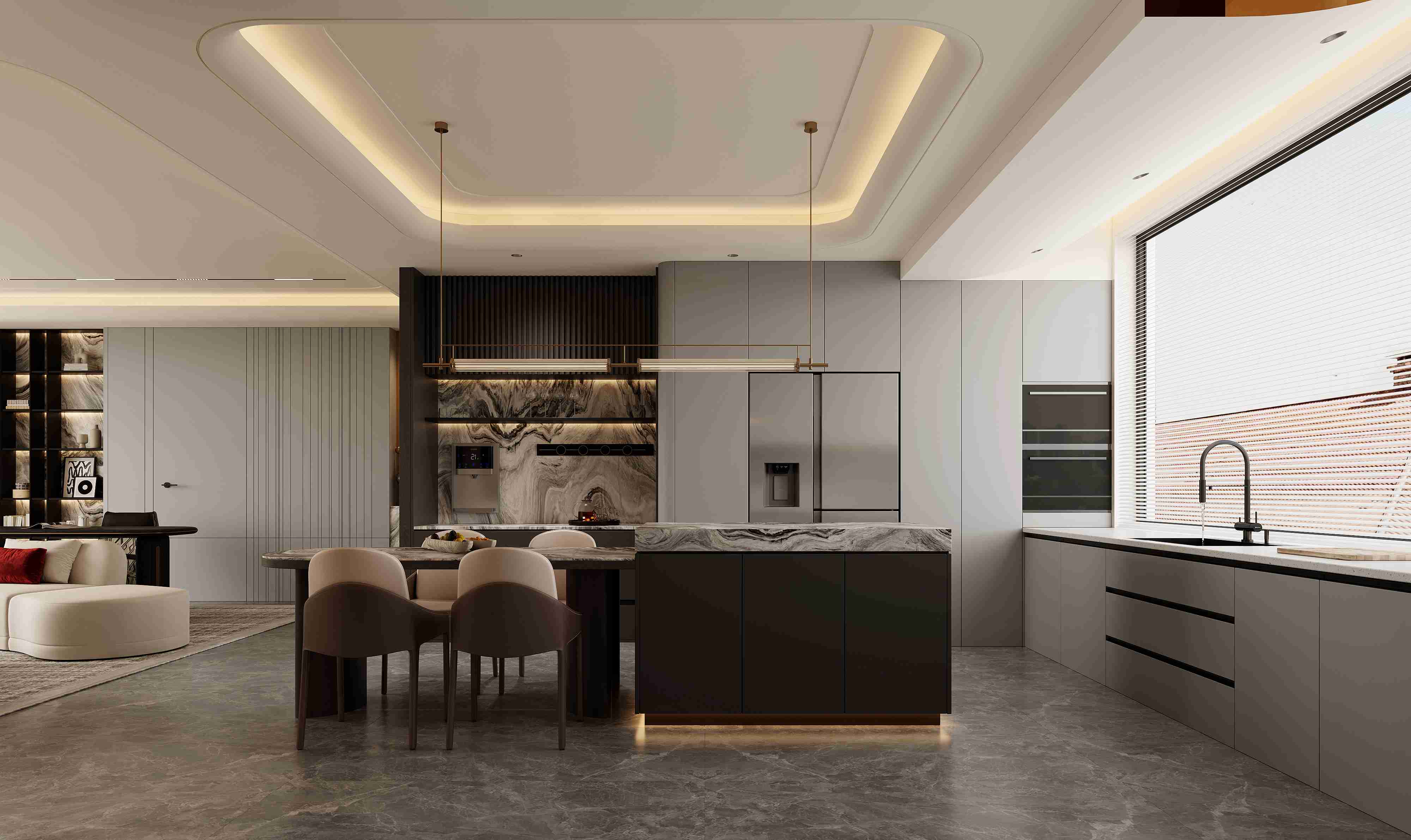 在開放的空間中,增加客廳空間的層次感與視覺豐富度,使其成為家中的一處景觀所在。